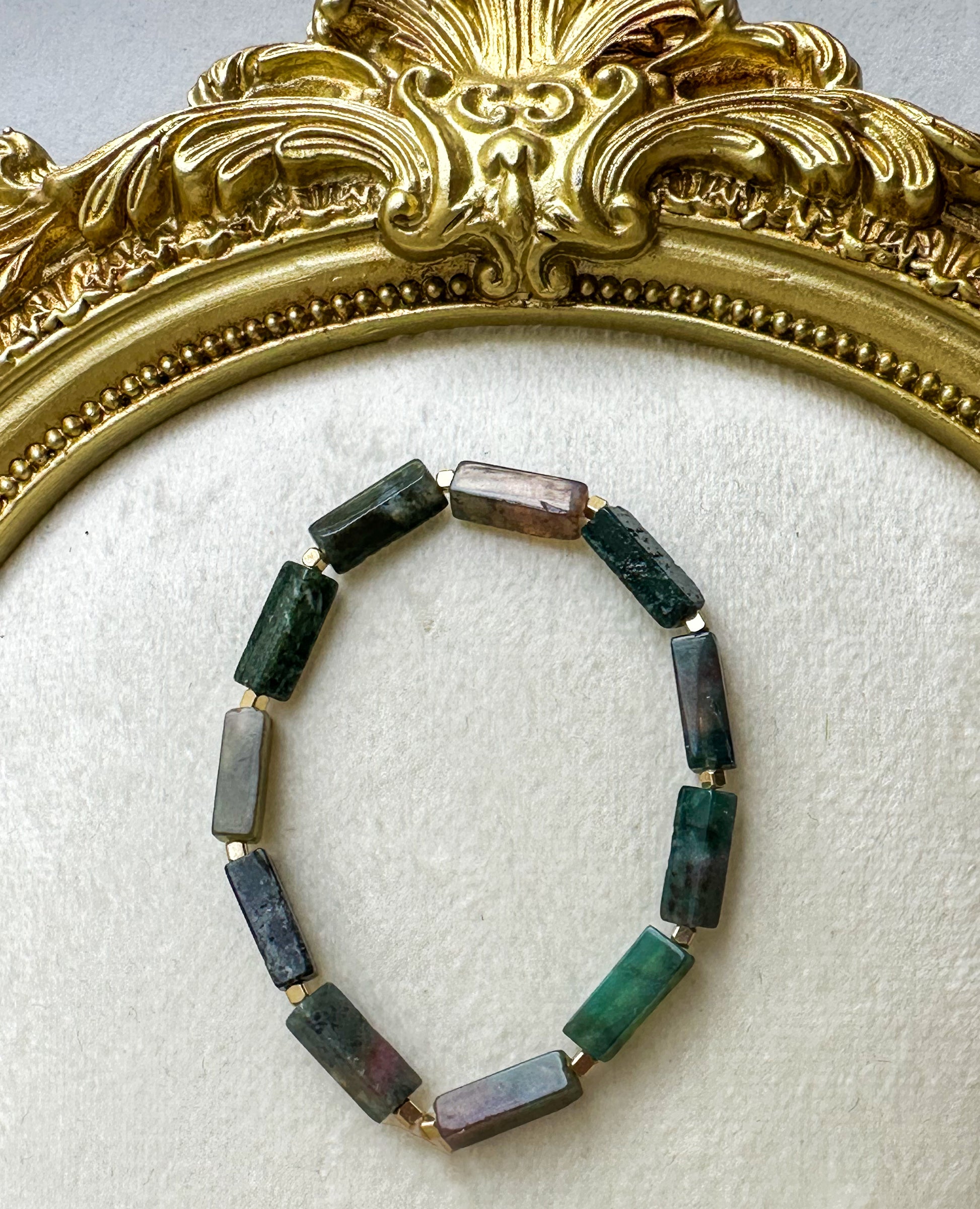 Chunky green stone beads that feel like stepping stones through a mossy forest path.