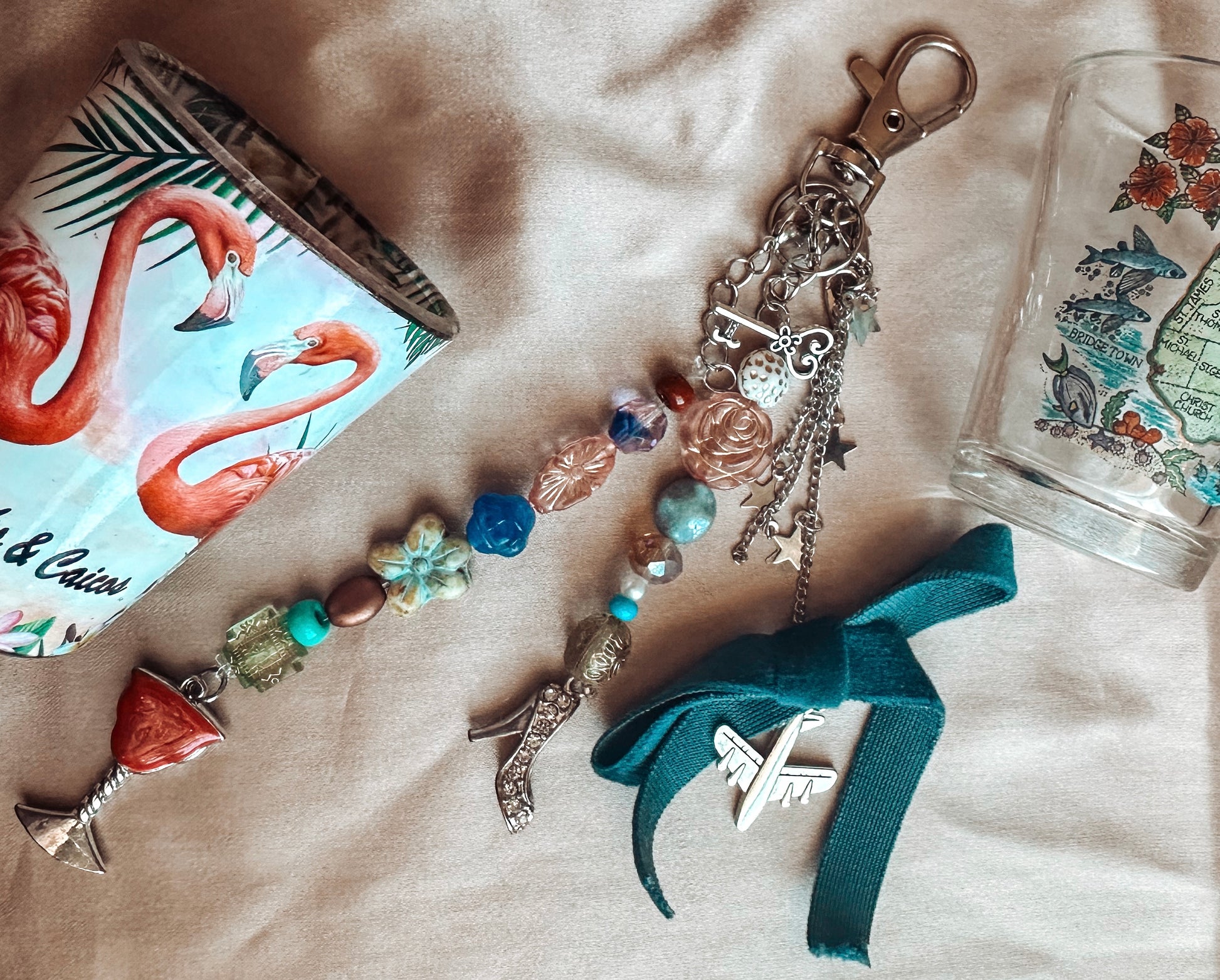A beachy glam mix of glass beads, roses, and cocktail flair.